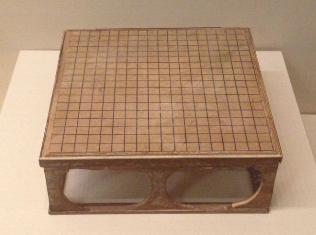 該棋盤長(zhǎng)寬約20厘米,1973年在新疆吐魯番阿斯塔那出土。木質(zhì)不明。新疆氣候干燥缺水,不像南方潮濕,因此木制品才得以保存千年不腐。