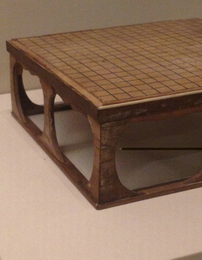 近日國(guó)博舉辦絲綢之路展覽,有幸見到展出的唐代家具實(shí)物--棋桌,或許只是個(gè)模型。